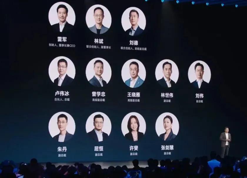 雷军还谈到了小米现在的 12 位高管:" 大家可以看到我们今天高管团队的名单,早期还有两位和我在继续打拼,9 位都是新面孔。我们引进外部的顶尖人才。这些同事为过去几年小米的发展做出了巨大的贡献。也借此机会感谢卢伟冰和这些人才。"