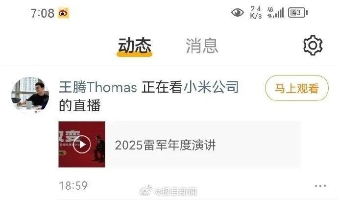 雷军年度演讲,谈人、谈车、谈芯片、谈内耗…没谈王腾,王腾在线看直播