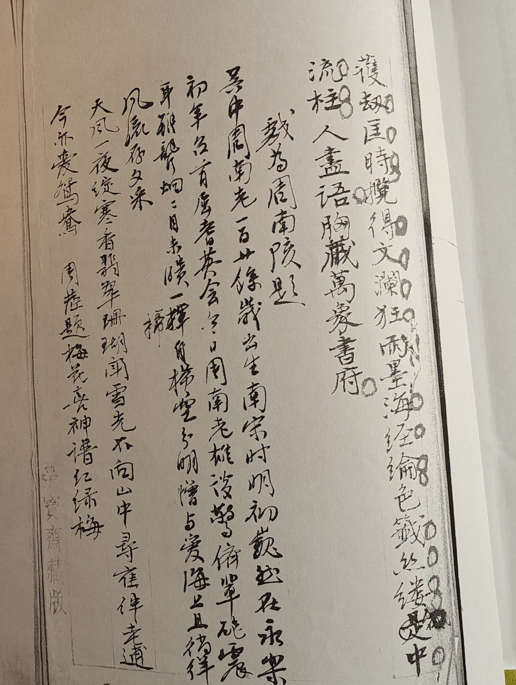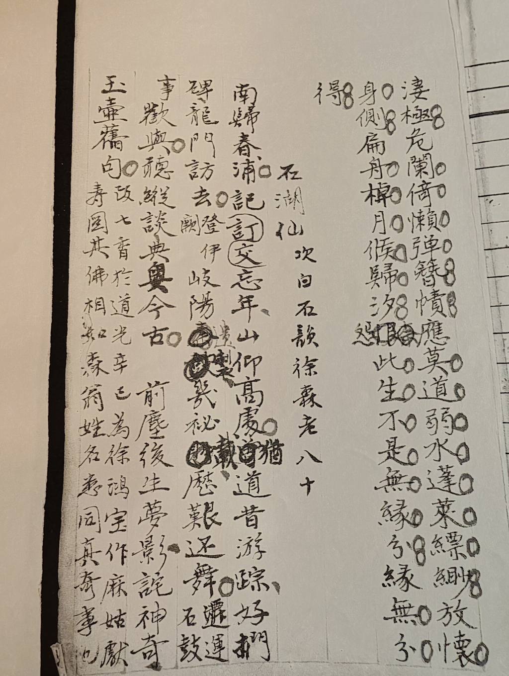 南归春浦。许交订忘年,山仰高处。犹记昔游踪,好扪碑、龙门访去。岐阳遗制,几秘载、历艰还舞。欢与。听纵谈、典奥今古。 前尘后生梦影,诧神奇、玉壶旧句(改七香为徐鸿宝先生画于道光辛巳年)。护劫匡时,揽得文澜狂雨。墨海经纶,色签丝缕。是中流柱。人尽语。胸藏万象书府。