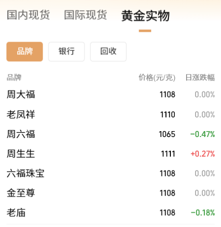 国内黄金饰品方面,数据显示,国内金饰克价悉数站上1100元。9月29日,周生生金饰价格为1111元/克,老庙黄金为1108元/克,周大福足金首饰、六福珠宝、金至尊为1108元/克。