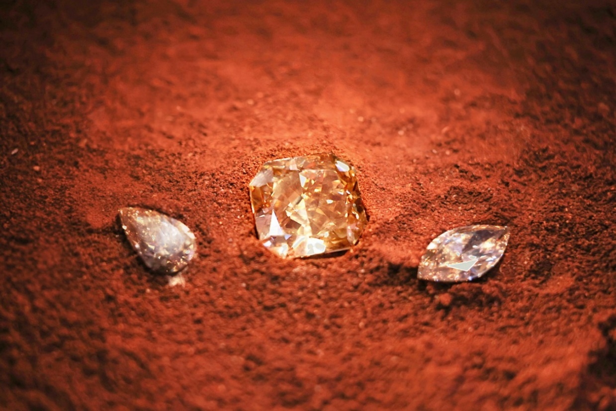 戴比尔斯试图讲述的第一个新故事,是对“美”的重新定义,将焦点从传统的“完美无瑕”转向“独一无二”的自然之美。这体现在此次展会的核心展品——“Desert Diamonds”渐变色沙漠主题天然钻石系列上。