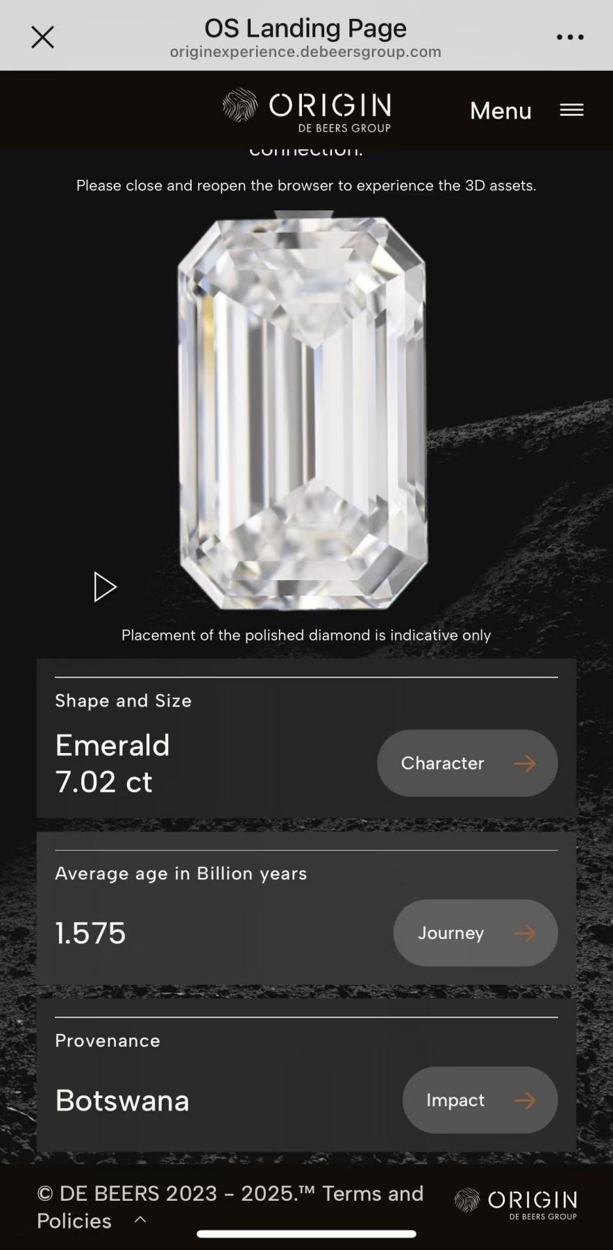 重塑美学是情感层面的软实力,而科技之上的透明度,则是构建信任的硬通货。这是戴比尔斯新故事的第二个关键章节——“钻石溯源”(Origin, De Beers Group)计划。
