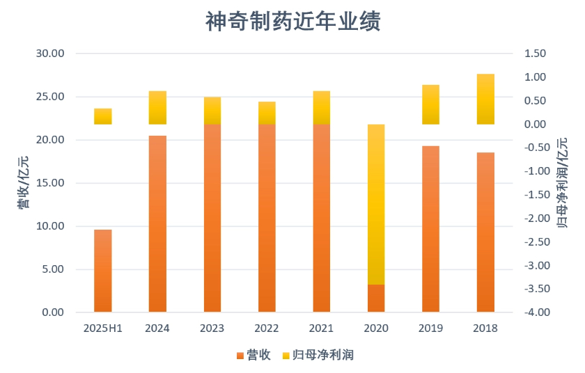 到2025年上半年,公司营收、归母净利润分别为9.61亿元、3280.81万元,分别同比下滑13.47%、13.29%,依旧未能扭转颓势。而此次行政监管措施后,神奇制药的未来更未可知。