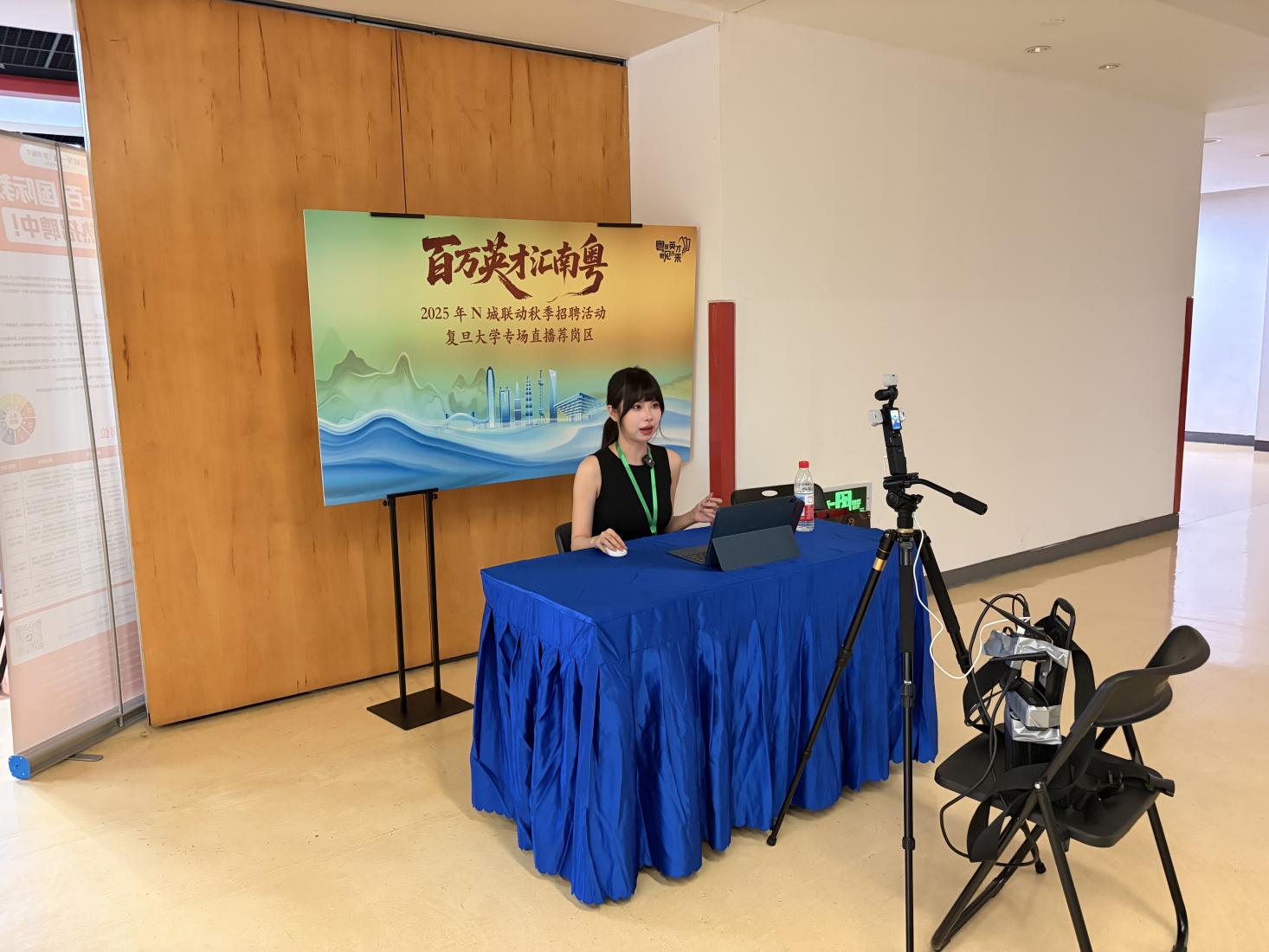 在复旦大学专场,郑慧文正在通过直播推荐岗位。宝安区人力资源服务中心 供图