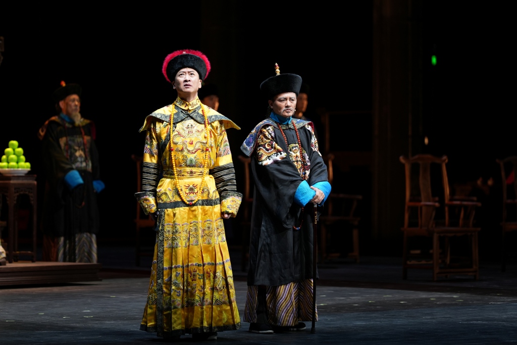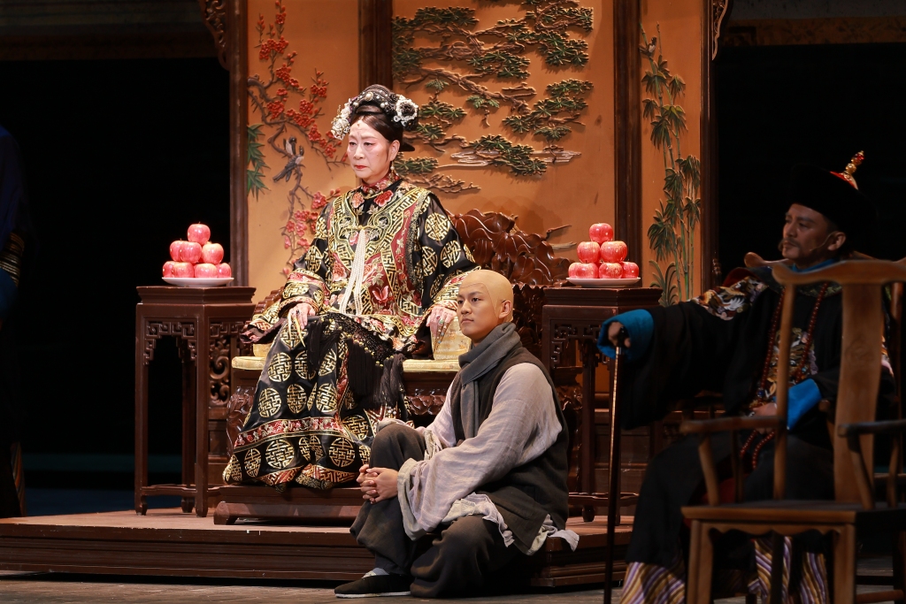 奚美娟的表演美学与《北京法源寺》的整体叙事哲学高度契合。她不着痕迹地游走于不同的情感层次之间,展现了慈禧作为一个身处权力顶峰却内心孤独的老妇人的形象。历经十年的打磨,她的“慈禧”愈发纯熟,每一次登台都能为角色注入新的理解:她在这次演出中处理慈禧与光绪的对手戏时,不仅眼神中有统治者的审慎、长辈的关切,还有那语气里既有不容置疑的威严,又有一闪而过的柔软。