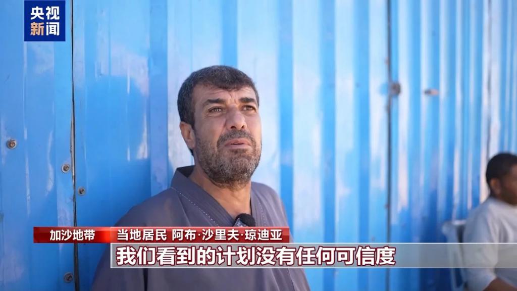 当地居民 阿布 · 沙里夫 · 琼迪亚:从特朗普上任一开始,他就说自己的计划是带来和平,让加沙停战。但到目前为止,我们看到的计划没有任何可信度,都是虚假的承诺,毫无实质内容。坦白说,所有的计划从未兑现过一句真话,我们看到的都是完全相反的情况。