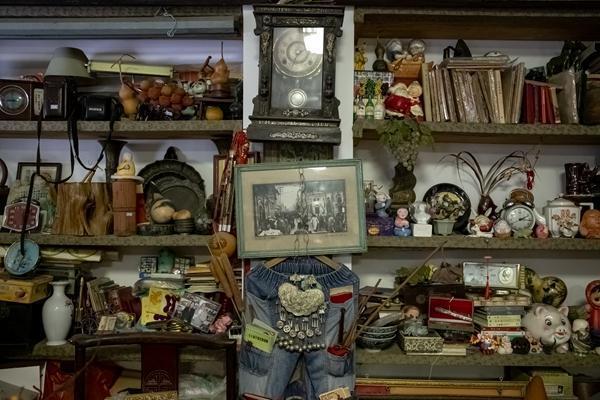 8 月 21 日,北京,一家胡同里的书店一角陈列着许多用于出售的老物件。这也是很多人对二手商品的传统印象。姚沐含 / 摄