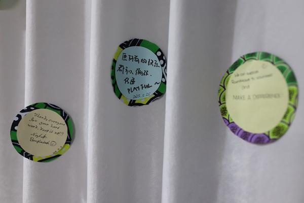 8 月 27 日,北京顺义,一家二手商店经常会招募志愿者来协助整理物品,一名志愿者留言:" 愿所有的快乐都可以循环、传递 "。姚沐含 / 摄