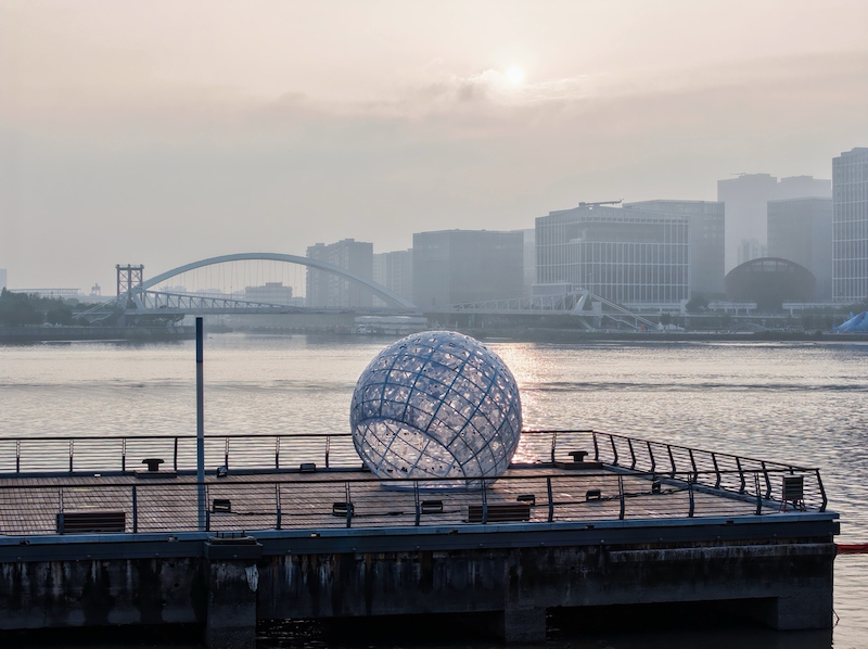 GATE M西岸梦中心亲水平台《月满》;项目策划与呈现:上海当代艺术博物馆 展亭设计:是所SHISUO 展亭共创:徐汇枫林“上海剪纸”非遗传承人石勤玲