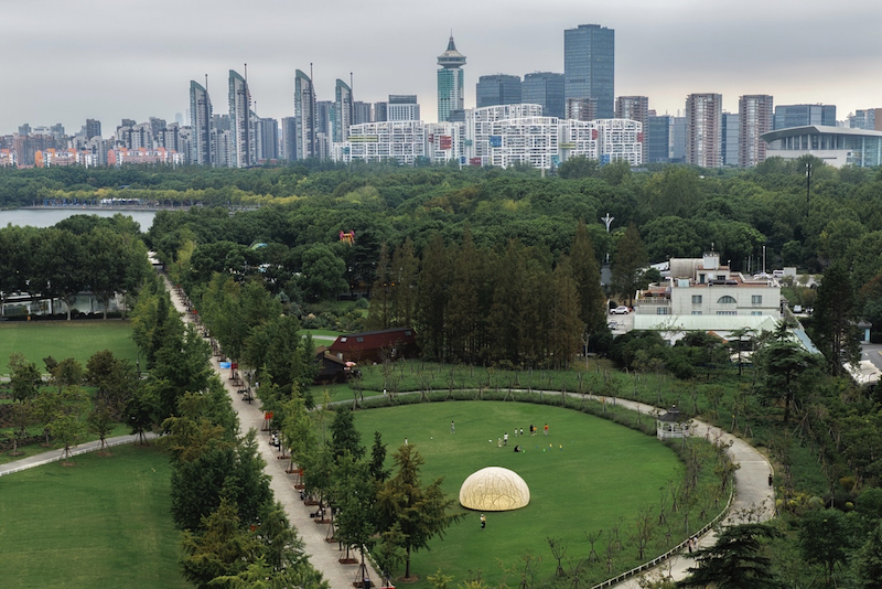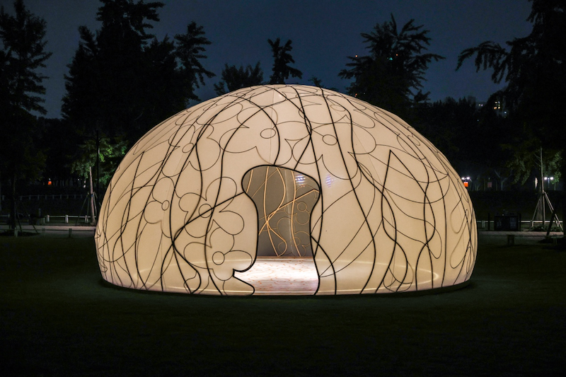 上海世纪公园半月形草坪《月桂》;项目策划与呈现:上海当代艺术博物馆 展亭设计:HCCH合尘建筑 展亭共创:“崇明灶花”非遗传承人张伦
