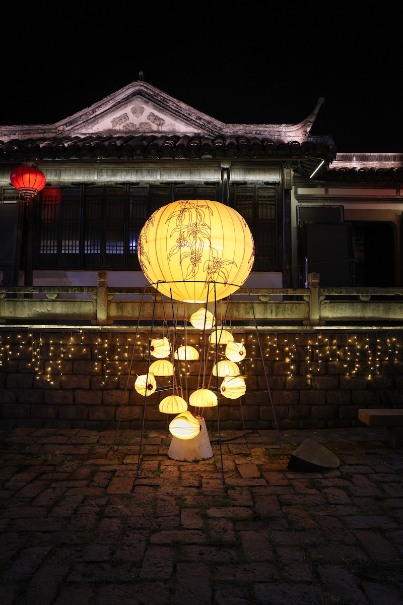 彦文建筑在南翔古镇的东塔下沉式广场,用钢筋与布灯笼搭建起《追月》展亭。它既是“南翔小笼”的褶皱,也是桂枝的弧线,更是玉兔额上的花钿。夜幕降临,布灯笼散发的温暖光辉,点亮青砖黛瓦,成为城市夜色中最具烟火气的“月光”。