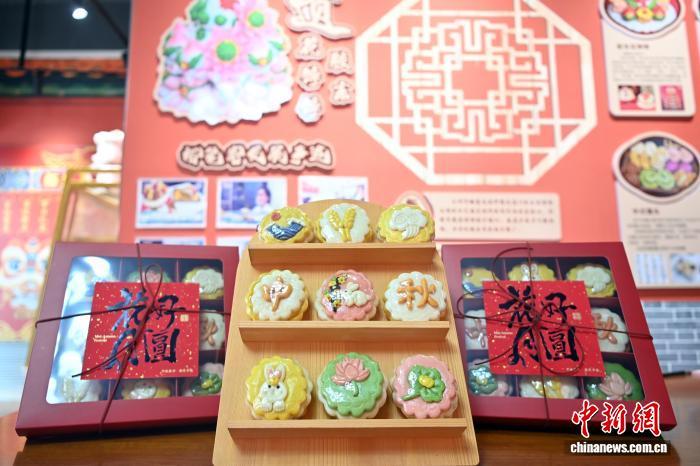 资料图:图为展出的九宫格“馍”法月饼。中新社记者 九美旦增摄