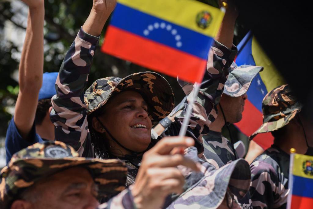 10 月 4 日,在委内瑞拉首都加拉加斯的玻利瓦尔广场,玻利瓦尔民兵组织成员参与全国特别军事演习。新华社发(马科斯 · 萨尔加多摄)