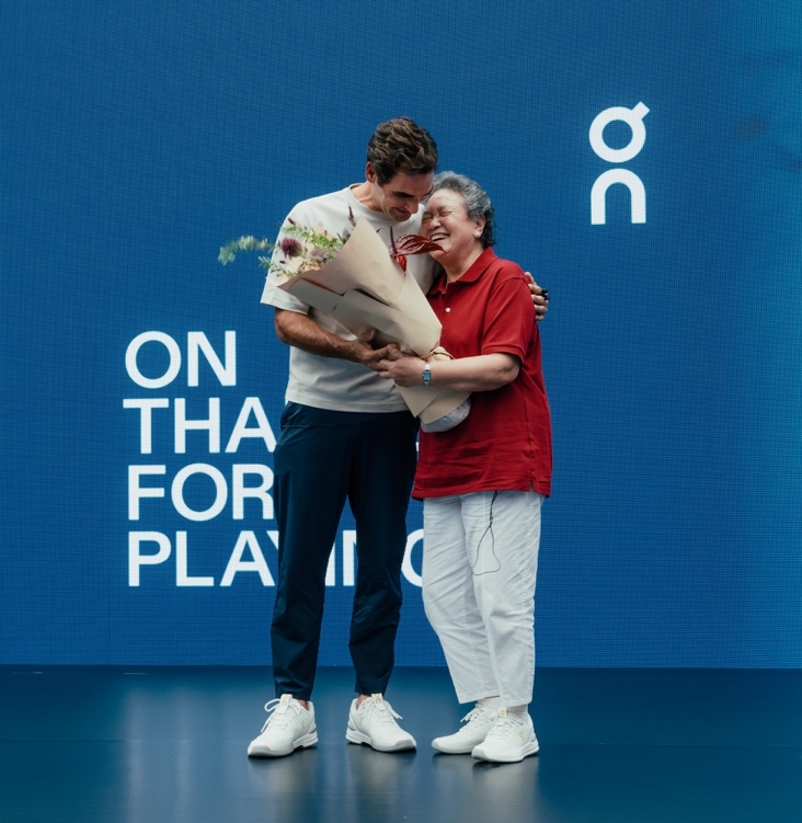 在10月8日的On昂跑“致敬每一场”活动上,品牌联合创业者、瑞士网球天王罗杰·费德勒就与刘运智同框。在On昂跑与刘运智团队共同翻新升级的徐汇区第一少年业余体育学校网球场上,费德勒与刘运智一起为球场揭幕,费天王更是在场上留下了充满纪念意义的球印和签名。