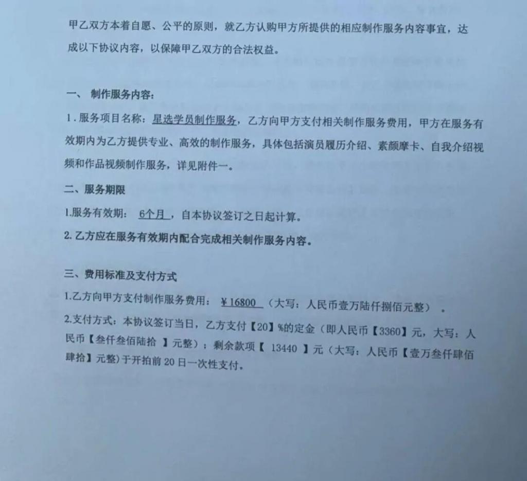 回过头来重新审读合同,她才意识到条款中只列明了培训课时、模卡拍摄等基础服务,而 " 提供演出机会 " 这一最关键的口头承诺,从未出现在纸面上。合同中甚至还列有 " 包装费不予退还 " 等明显不公的条款。