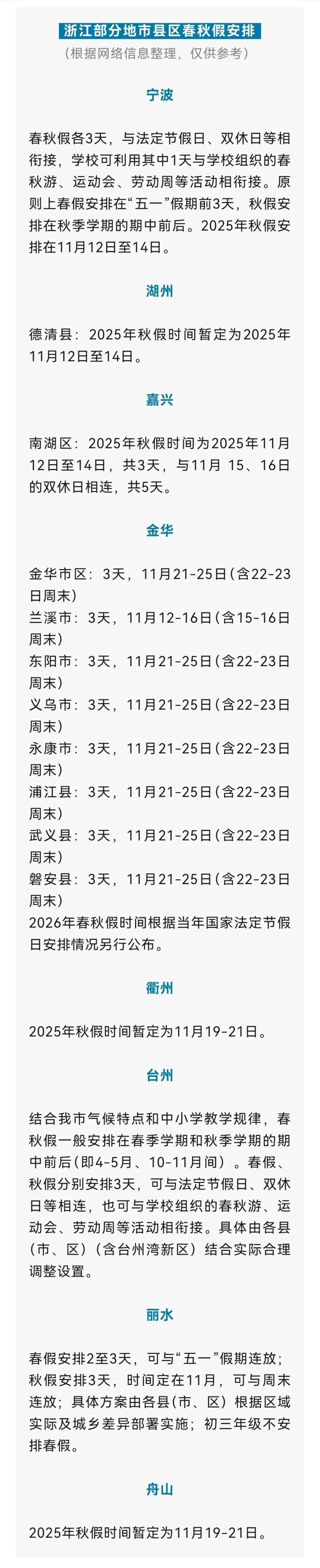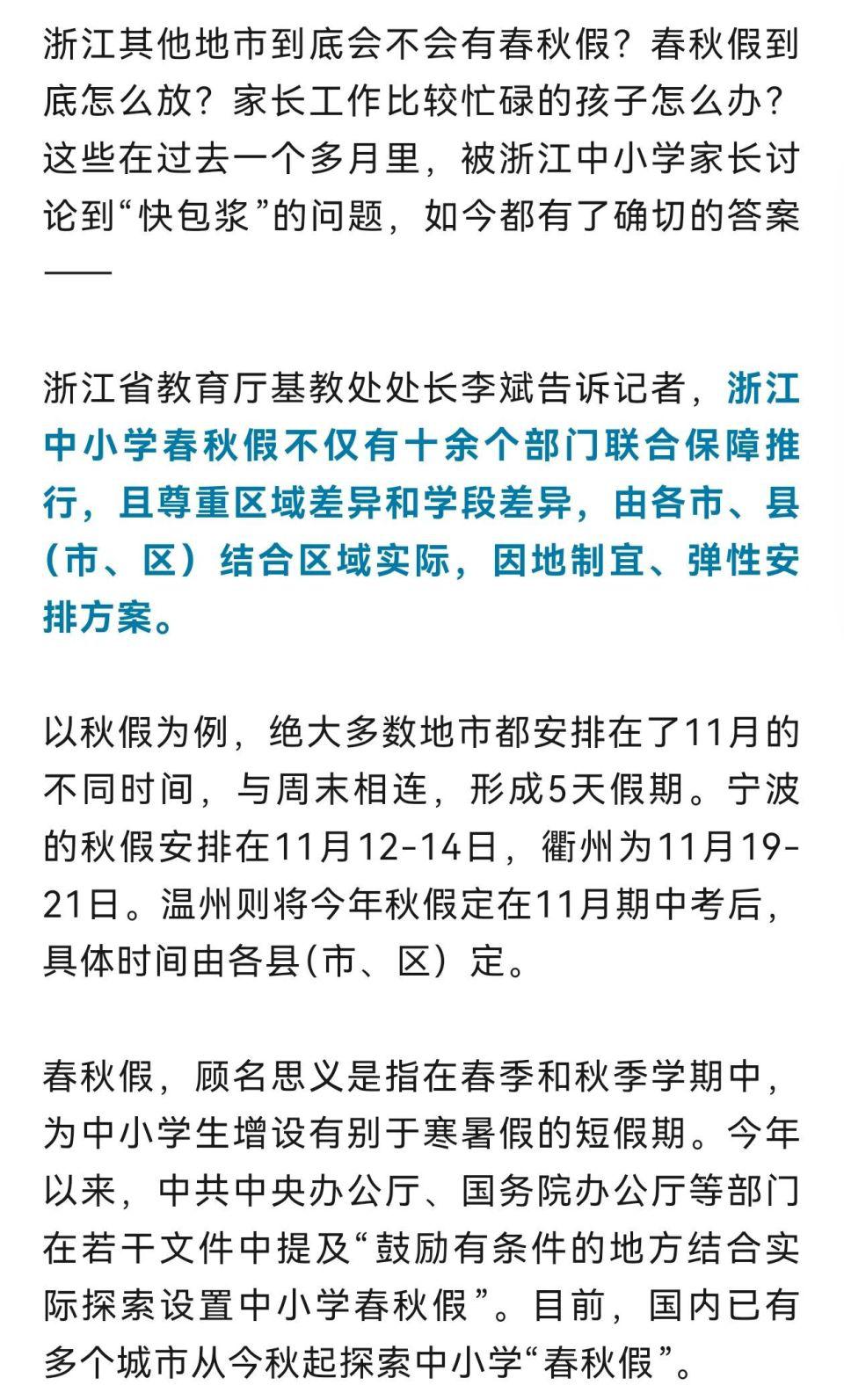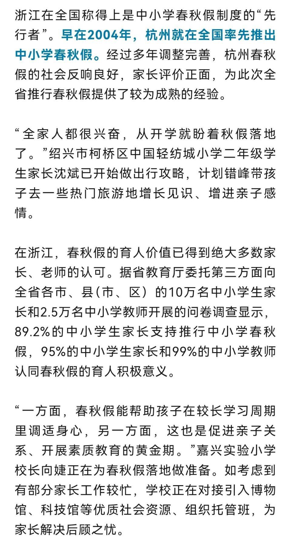 浙江中小学生和家长望眼欲穿的全省域春秋假,真的来了!