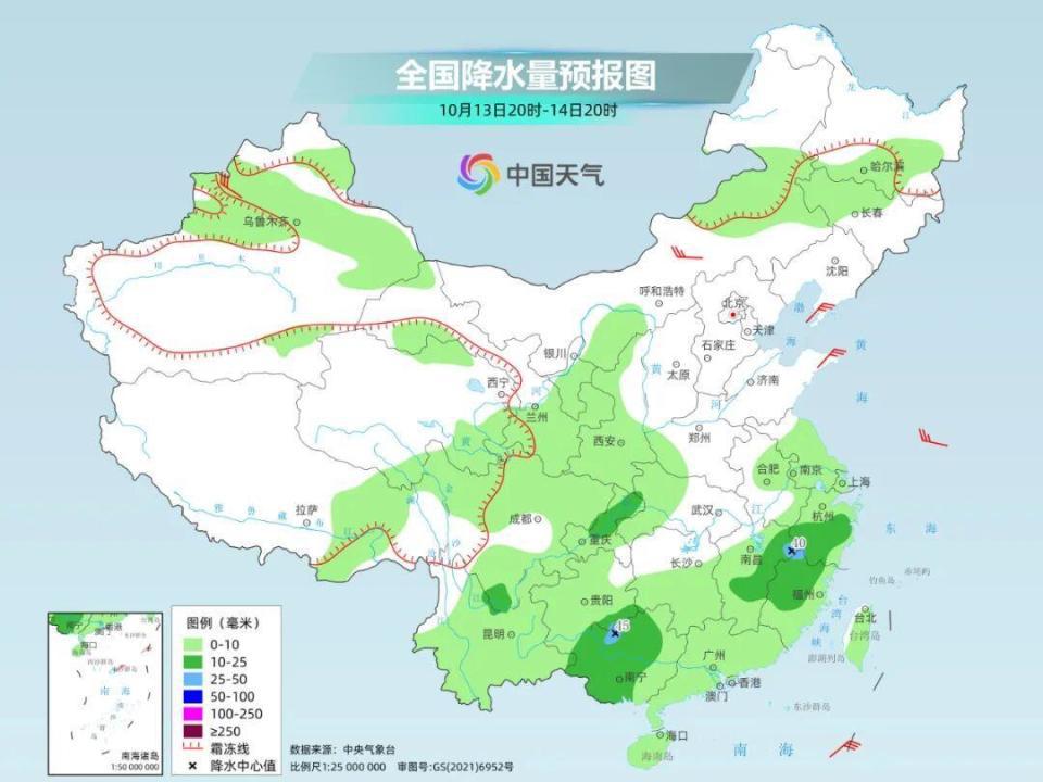 后天晚上至 15 日白天,四川东北部、重庆中北部至山东南部、江苏北部等地仍然会有中到大雨、局地暴雨现身。