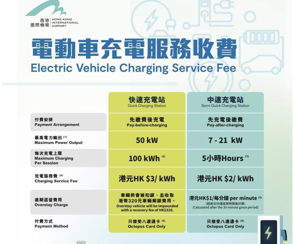 除了购车时的政策优惠,电动车在日常使用成本上也有优势。记者在香港停车场的公共充电桩处看到,充电计费分为两种方式:一种是按时长计费,常规价格为 30 港元 / 小时,部分时段会推出限时优惠价(21 港元 / 小时),且不满 1 小时按 1 小时计算;另一种是按电量计费,机场的快充站中,每度电的价格仅为 3 港元。值得注意的是,为保障充电桩高效利用,充电完成后车辆需立即驶离,车位管理十分严格,避免长期占用充电车位。