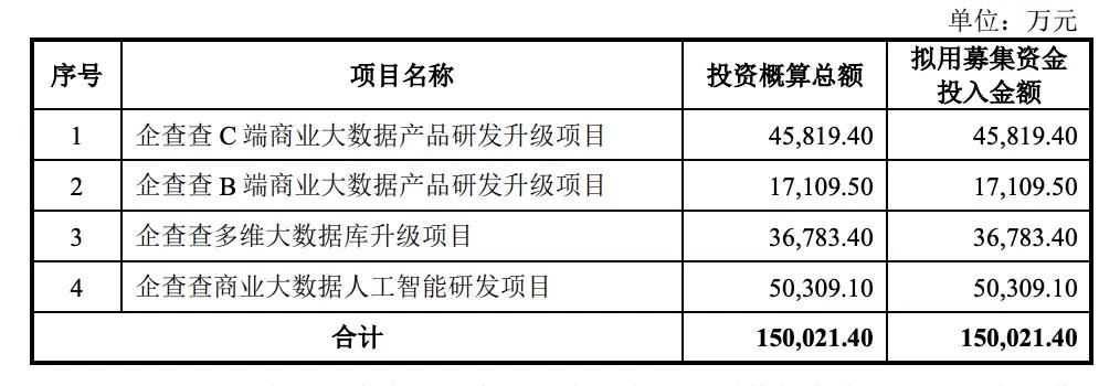 从招股书披露的募集资金用途看,15 亿元中有约 10 亿元(66.5%)将投入产品升级——包括 C 端 4.58 亿元、B 端 1.71 亿元、多维大数据库 3.68 亿元,还有 5 亿用于 AI 研发。可见企查查确实意识到了技术投入的重要性。