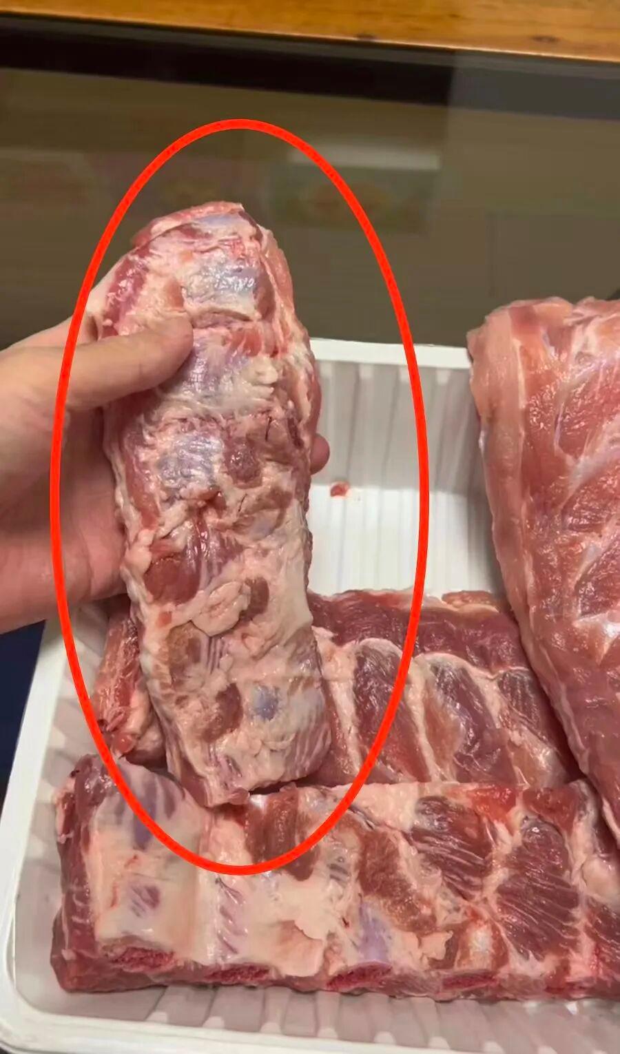 王先生表示,一份猪肋排一共 4 块,他在分装时发现其中一块的颜色较深," 拿起来闻了一下,一股恶臭。" 王先生说,当时就被那股异味恶心到了。