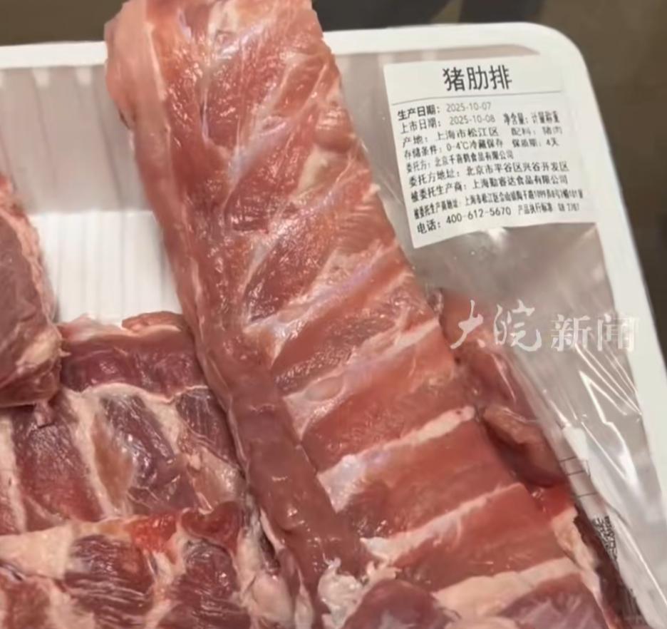 据王先生提供的视频,该盒猪肋排生产日期为 10 月 7 日,上市日期为 10 月 8 日,王先生在 10 月 9 日傍晚购买到了这盒猪肋排。