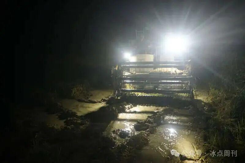 村里一位开收割机的师傅,有时下午两点才吃上午饭。有时,到晚上十一二点,收割机还在田里熬夜,机顶照明灯像萤火虫一样,在漆黑一片的田野闪烁着,等待颗粒归仓的农民和载货的拖拉机也都陪在一旁。