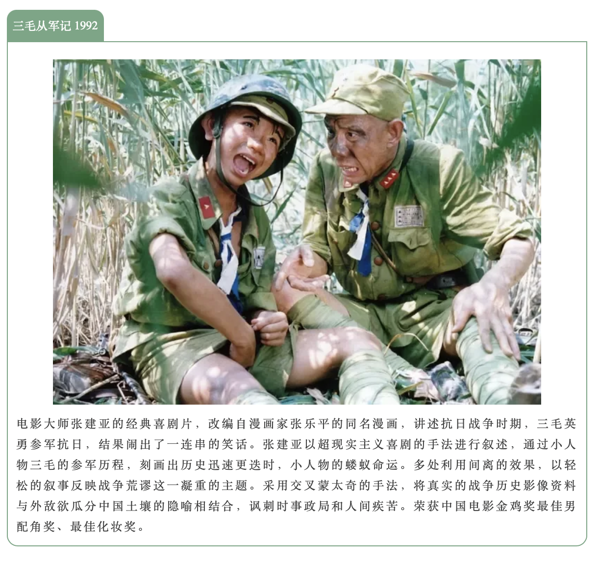 同样来自张建亚的《三毛从军记》(1992)则改编自张乐平同名漫画,以超现实主义手法让小三毛“参军抗日”,在啼笑皆非中反思战争的荒谬与人性的坚韧。两部影片均以鲜明时代印记和生动群像,成为观察时代的绝佳样本。
