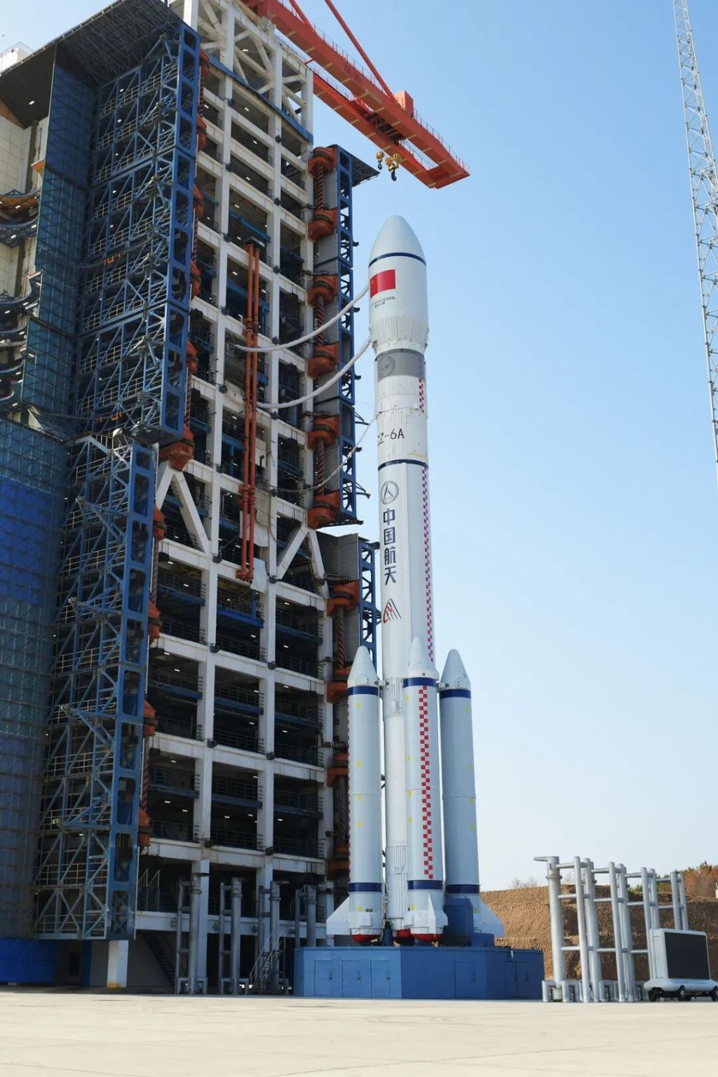 澎湃新闻记者从中国航天科技集团八院(又称上海航天技术研究院)获悉,长征六号甲运载火箭是由八院抓总研制的新一代固液捆绑中型运载火箭,可满足单星,多星串联、并联、堆叠、壁挂、搭载等多样化密集发射需求,太阳同步轨道运载能力不低于6.5吨(轨道高度500公里)。