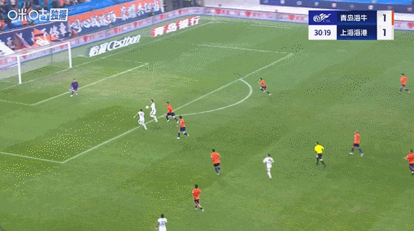 上半场第11分钟,青岛海牛的萨里奇助攻,兰克尔禁区内爆射率先破门。