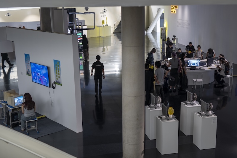 澎湃新闻了解到,此次跨媒体艺术节呈现了国内外90组、近200名艺术家的百余件作品,艺术家来自阿根廷、瑞士、奥地利、德国、美国、韩国、新加坡、澳大利亚等12个国家、地区,作品涵盖涉及人工智能(AI)艺术、虚拟现实(VR)/混合现实(MR)艺术、生成艺术、影像艺术、装置艺术等多种形式的创作媒介。