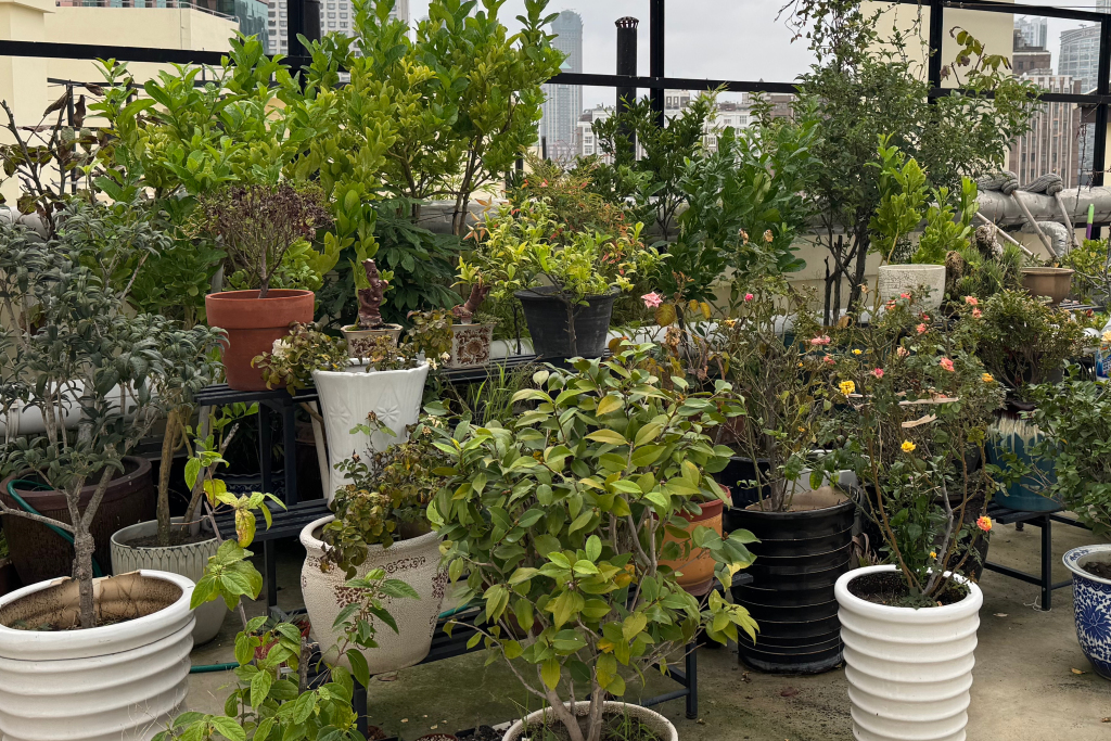 南昌大楼屋顶花园的花花草草。鲁怡 摄