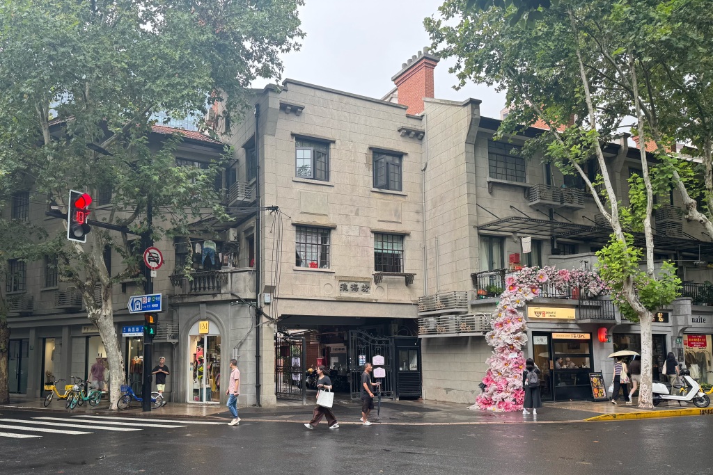 与泰戈尔花园呈对角线相对的就是淮海坊,其沿街商铺七豚拉面楼上的阳台进行了花艺布置,打造为“最美阳台”,今年夏天,有音乐快闪活动在阳台上举行,以整个街区为舞台,提供和历史风貌区相匹配的文化供给。