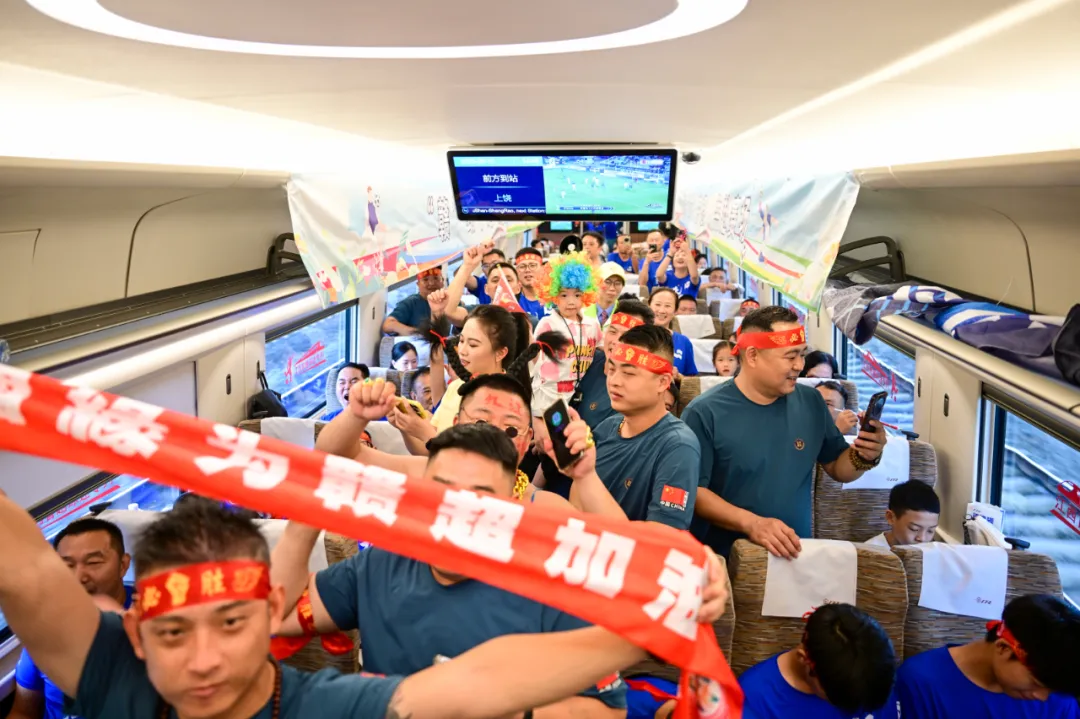 8月10日,1100余名球迷乘坐G9813次赣超球迷专列从庐山站出发。江西日报全媒体记者洪子波 摄