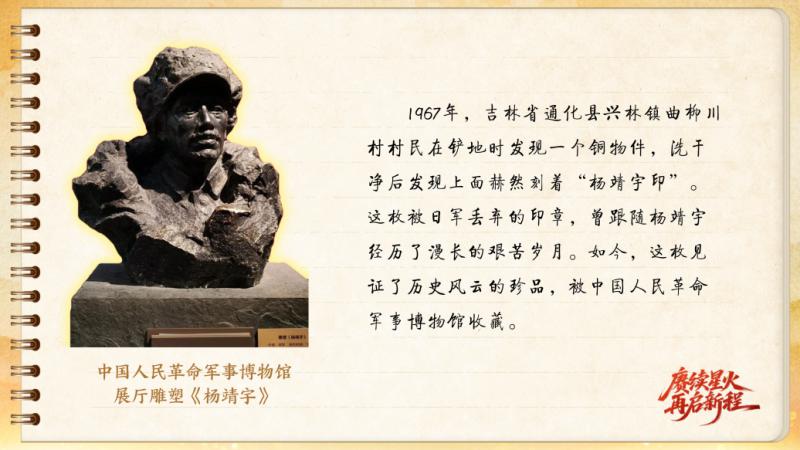 1967 年,吉林省通化县兴林镇曲柳川村村民在铲地时发现一个铜物件,洗干净后发现上面赫然刻着 " 杨靖宇印 "。这枚被日军丢弃的印章,曾跟随杨靖宇经历了漫长的艰苦岁月。如今,这枚见证了历史风云的珍品,被中国人民革命军事博物馆收藏。