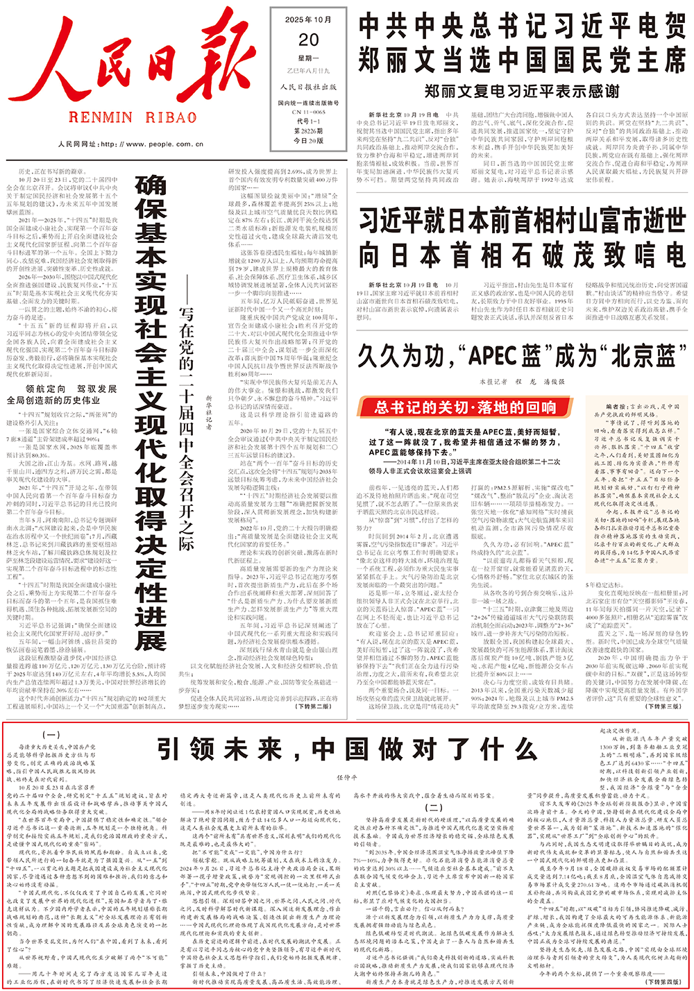 今天(20日)出版的人民日报头版发表任仲平文章《引领未来,中国做对了什么》,文章说,“在世界百年变局中,中国提供了稳定性和确定性。”领会习近平总书记这一重要论断,五年规划是一个独特视角。科学制定和接续实施五年规划,是我们党治国理政的重要方式,是读懂中国式现代化的重要“密码”。