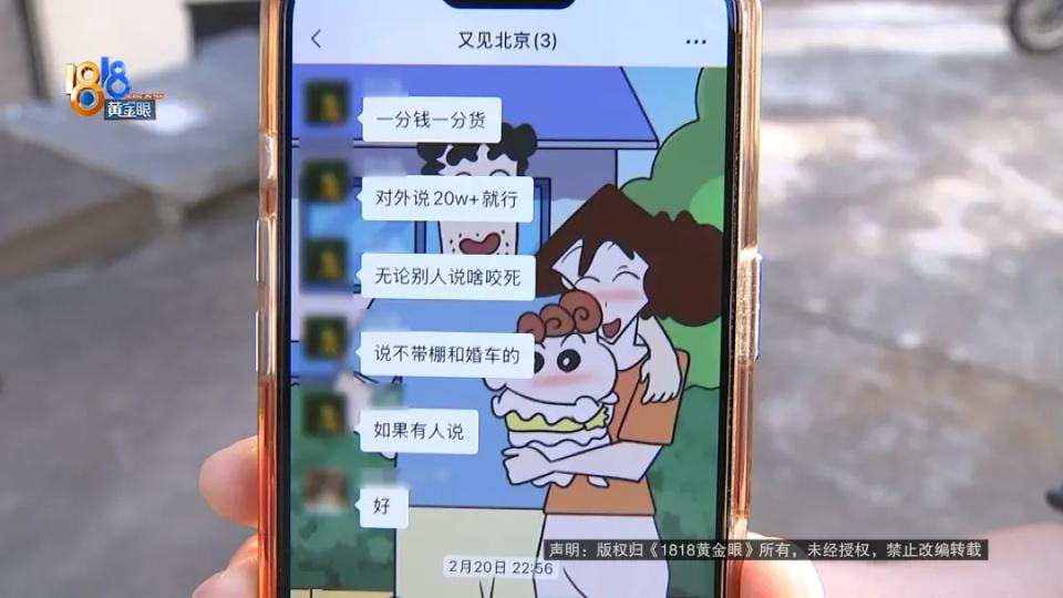 杨女士:他是给我出了一个很简约的一个报价单,上面写着 20 到 24 万,他说友情价给你打折到 16 万 , 他说可以给你做出起码 20 多万的一个效果,非常好,让你在村里有面子。因为我们是大棚婚礼,然后他说在村里能让别人讲上三天的那种,就非常好,讲得天花乱坠。