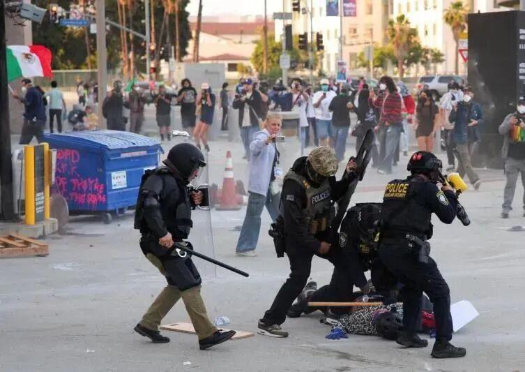 当地时间 6 月 7 日,美国联邦执法人员在洛杉矶暴力逮捕非法移民。