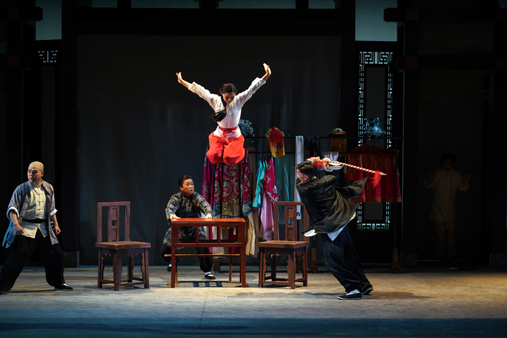 在叙事上,《戏里戏外》加入了很多“戏中戏”的设计,《打渔杀家》《钓金龟》《游园》《劈山救母》《长坂坡·汉津口》等京剧传统戏都会在剧中再现,观众既能体验到传统骨子老戏的精粹,也为全剧增添了“舞台里的舞台”的趣味。
