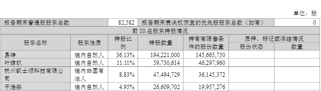 股权方面,截至今年三季度末,公司持股比例在5%以上的股东共有3家,分别为易峥、叶琼玖、杭州凯士顺科技有限公司,持股比例分别为36.13%、11.11%、8.83%。
