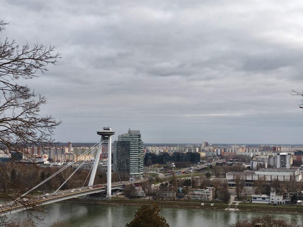 上坡路两侧的建筑松散阔落,相比紧凑密集的老城和总统府一带,这里显得极其清幽,坡度带来的错落感也让人相当惬意。行至城堡,游客渐多。相比四四方方的城堡,更受欢迎的是城堡广场的观景台区域。山下的布拉迪斯拉发并没有布拉格、布达佩斯那样的顶级颜值,甚至有些杂乱,但多瑙河两岸的开阔疏朗,仍然展现着这座城市宜居的一面。