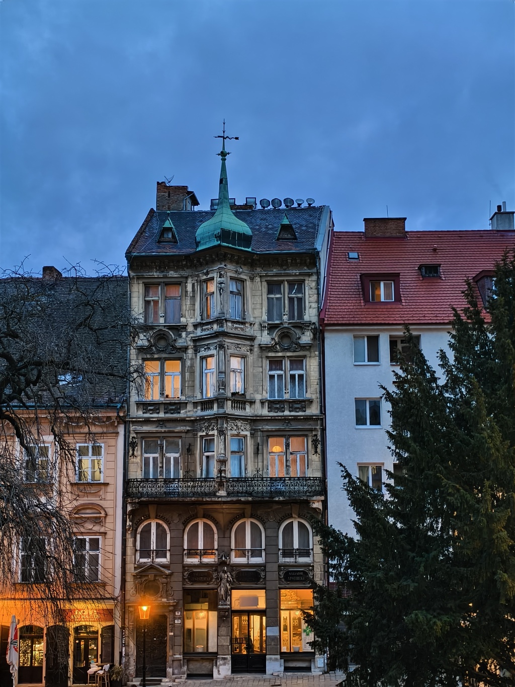 黄昏时,我再次漫步于布拉迪斯拉发老城街头,道路两旁遍布的巴洛克式建筑满是沧桑,也有一些粉刷如新,漂亮的雕纹即使在逐渐暗淡的光线下仍美妙动人。
