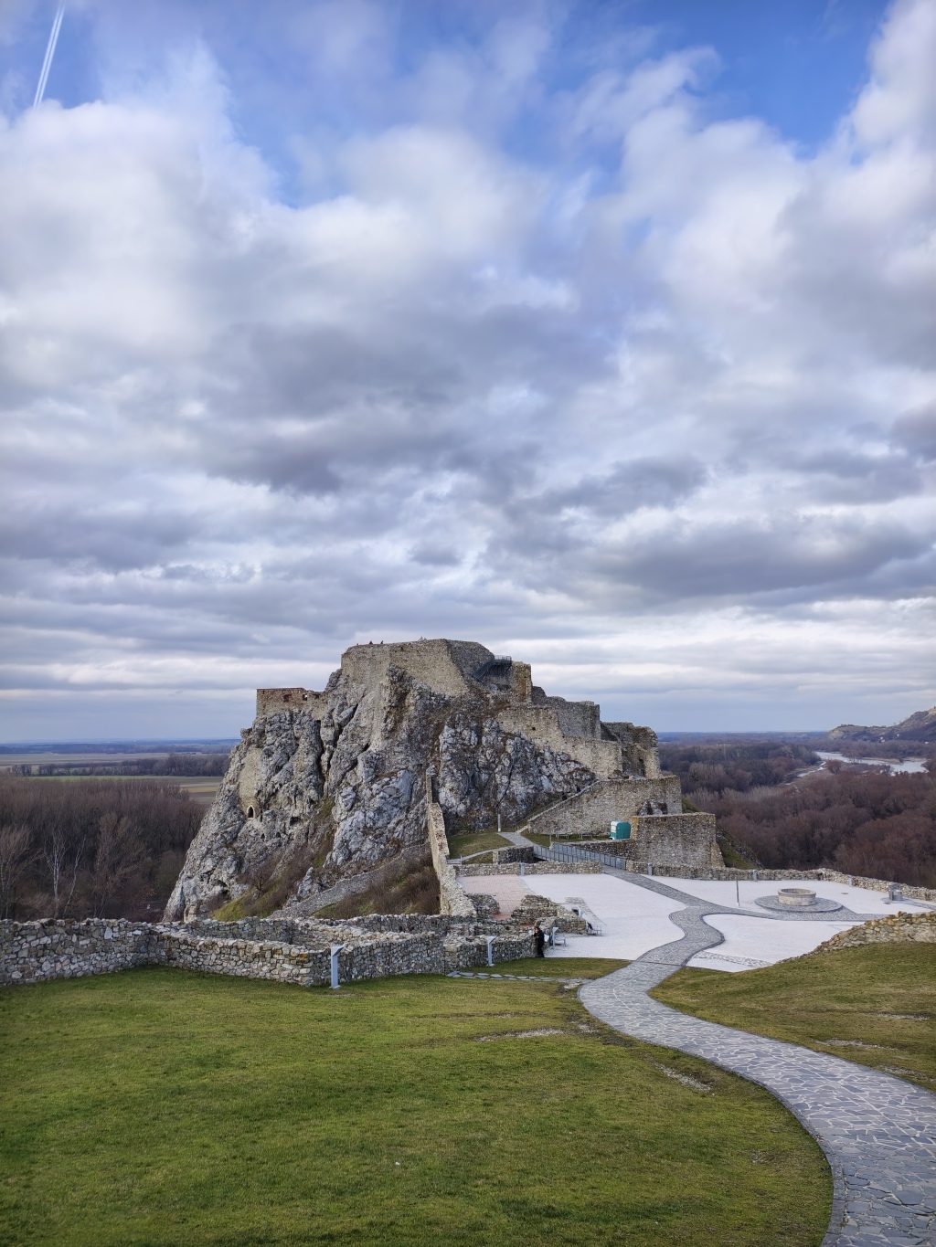 脚下的德文城堡,虽然大多数地方只剩断垣残壁,但仍极具气势,雄踞于山坡之上。在有“千堡之国”之称的斯洛伐克,德文城堡的颜值远非最高,但却是最常见于风光明信片的斯洛伐克城堡之一,是当之无愧的国家地标。