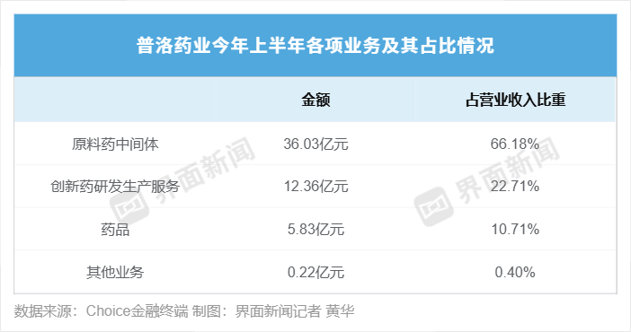 财务数据显示,原料药相关业务目前在普洛药业的营收占比中达到六成以上。据企业半年报,其原料药中间体业务主要包括头孢、青霉素、精神类、心脑血管类和兽药原料药中间体系列等。
