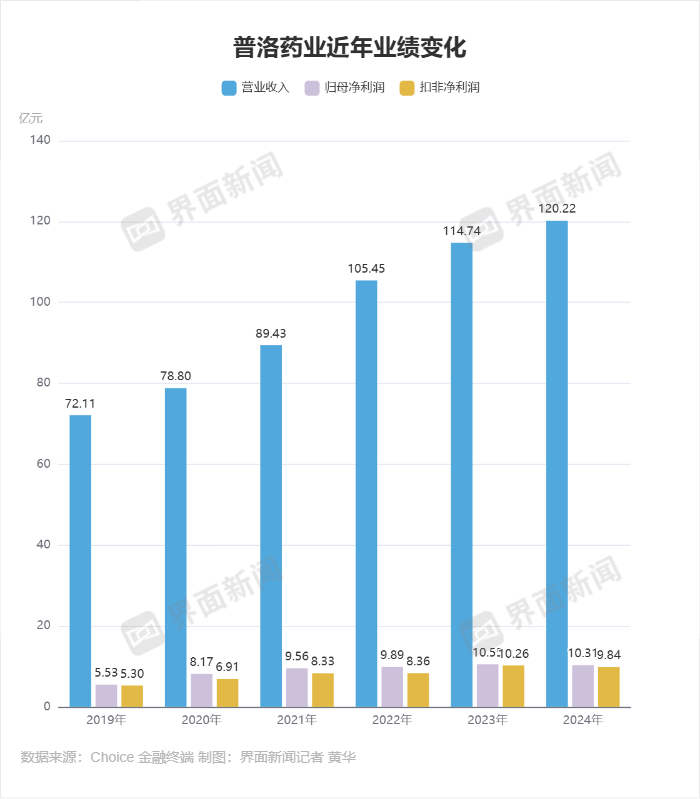 另外,就近三年业绩而言,普洛药业在2024年的盈利情况也出现了轻微下滑。期内,普洛药业的营收为120.22亿元,同比增长4.77%;归母净利润为10.31亿元,同比微降2.29%。