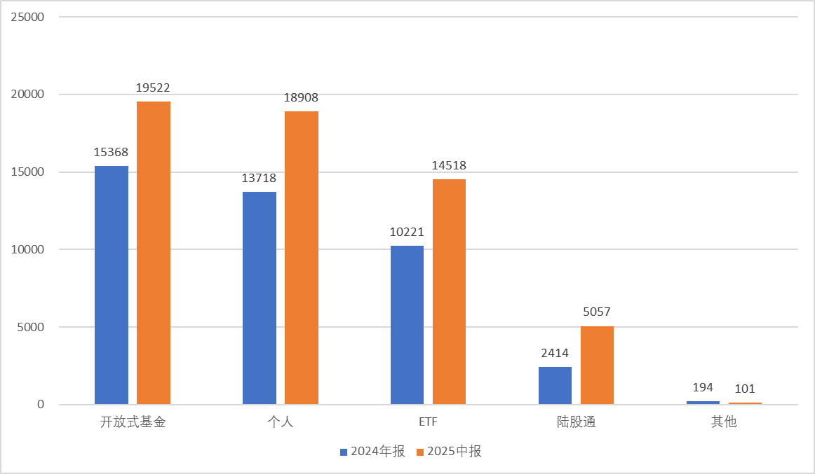 根据Wind数据,截至今年中报,开放式基金、个人、ETF和陆股通是新易盛背后最为重要的买方力量。其中,开放式基金和ETF分别累计持仓新易盛1.95亿股和1.45亿股,相较于去年年底增加4153.94万股和4297.19万股;陆股通持仓5057.47万股,相较于去年年底增加2643.76万股;个人持仓数量为1.89亿股,相较于去年年底增加5189.09万股。