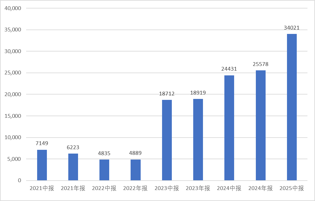 随后新易盛进入业绩爆发期,2024年和今年上半年,公司分别实现净利润28.38亿元和39.42亿元,同比增长312.26%和355.68%。公募基金选择继续增持该股,截至今年中报,公募基金公司累计持仓该股的数量已经高达3.4亿股。