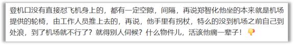 大概就是前几天郑智化发了条微博,说深圳机场对残障人士不友好。升降车离飞机门有 25 厘米的落差,他轮椅进不了飞机,升降车也没升上去,导致他“连滚带爬”进了飞机。