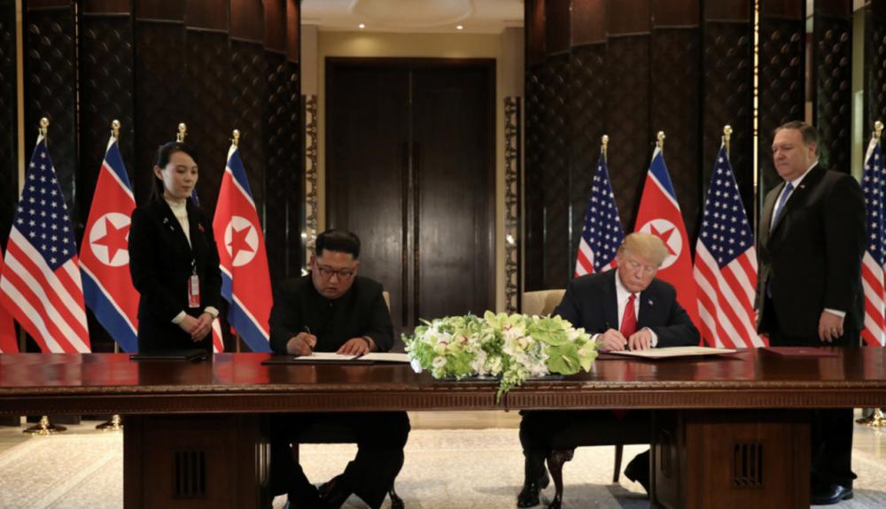 2018 年 6 月,特朗普与金正恩在新加坡举行会晤。
