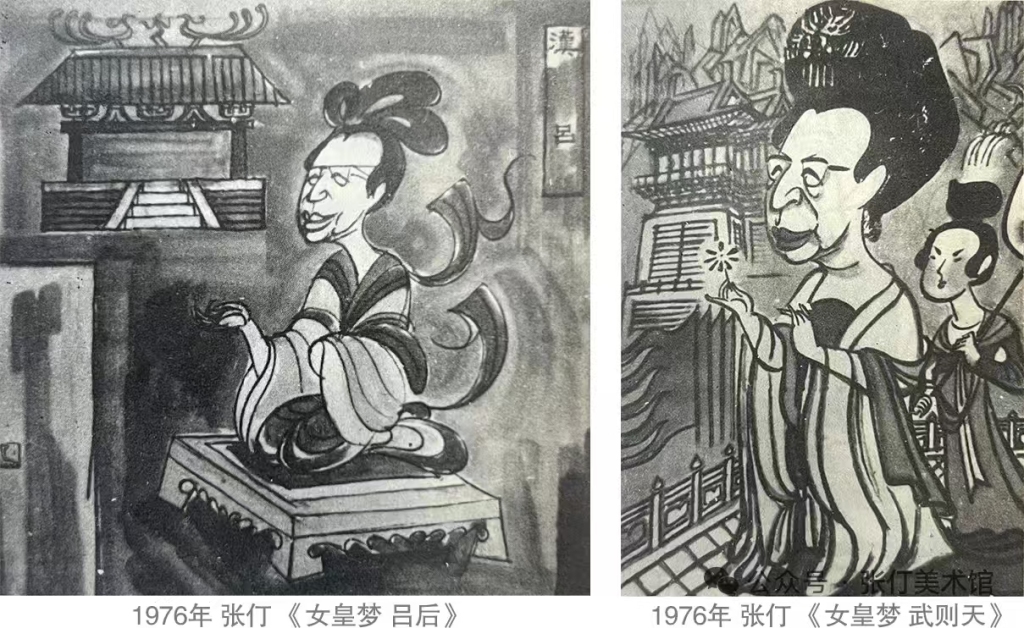 左:张仃漫画《女皇梦·吕后》 右:张仃漫画 《女皇梦·武则天》