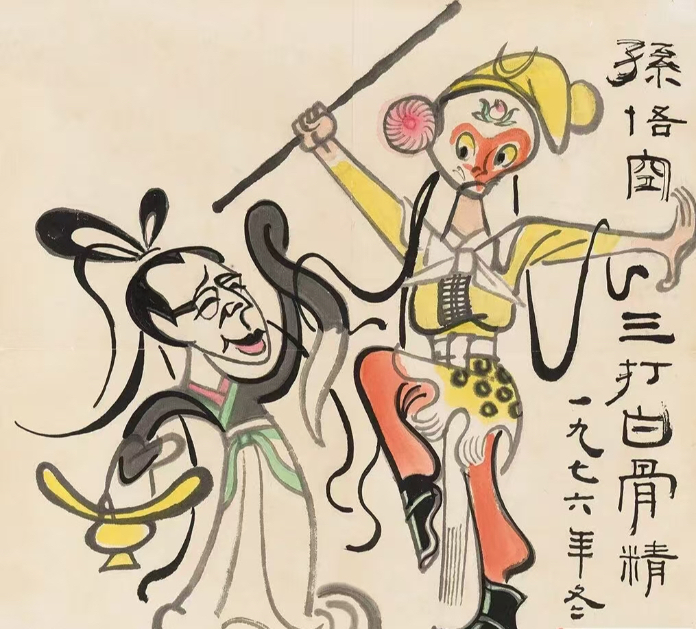 张仃漫画《孙悟空三打白骨精》之二,作于1976年冬